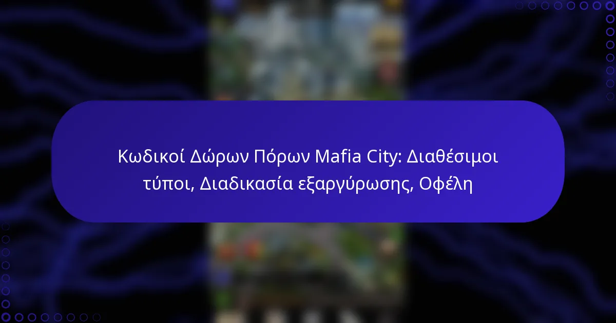 Κωδικοί Δώρων Πόρων Mafia City: Διαθέσιμοι τύποι, Διαδικασία εξαργύρωσης, Οφέλη
